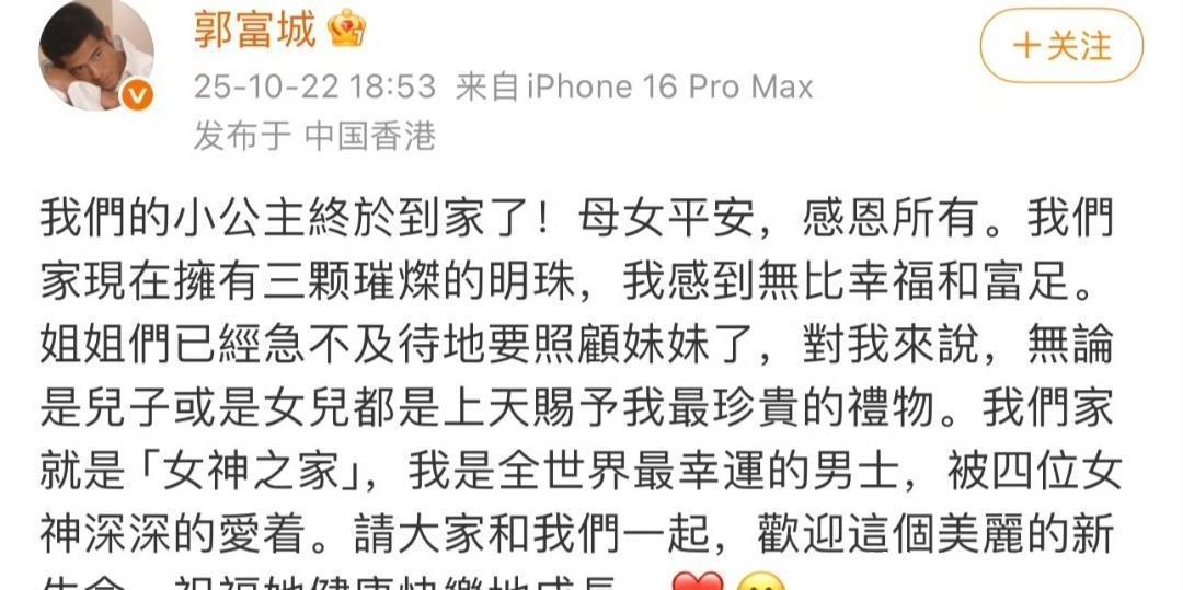 郭富城亲自驾车接三宝出院,四大天王儿女之谜近日,娱乐圈中传出一则引人注目的消息:郭富城亲自驾车接三宝出院。这一消息一出,立刻引起了广大网友的广泛关注和热议。据说四大天王中,除了张学友早婚早育之外,其他三位天王均是五十一岁高龄才迎来了他们的宝贝女儿。那么,这其中到底隐藏着怎样的故事?